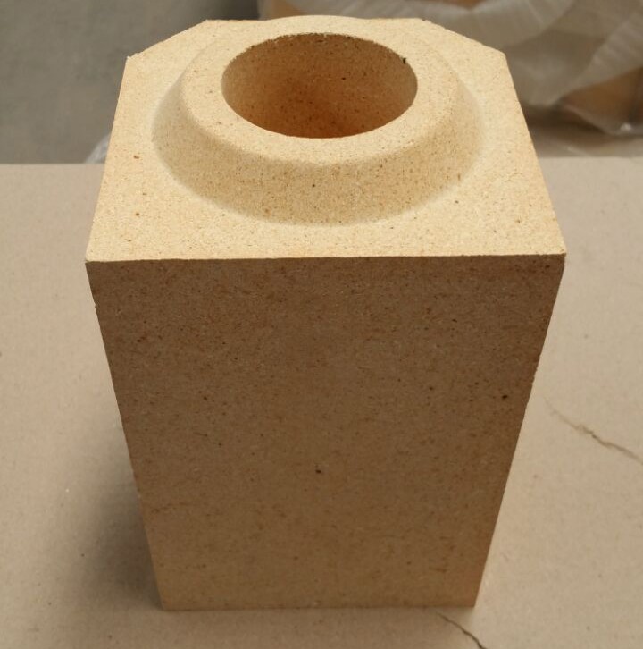 流鋼磚是砌在鑄錠用底板的溝槽內(nèi)連通分鋼磚和鋼錠模的中空耐火磚,俗稱(chēng)湯道磚。產(chǎn)品一般為有多種規(guī)格的長(zhǎng)方體形中空黏土磚。為減小鋼液流動(dòng)過(guò)程中的阻力并防止漏鋼,要求流鋼磚內(nèi)孔光滑,外形規(guī)整,接縫嚴(yán)密。